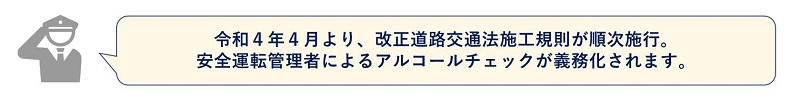 2022年10月より ⇒ アルコール検知器の使用が義務化
