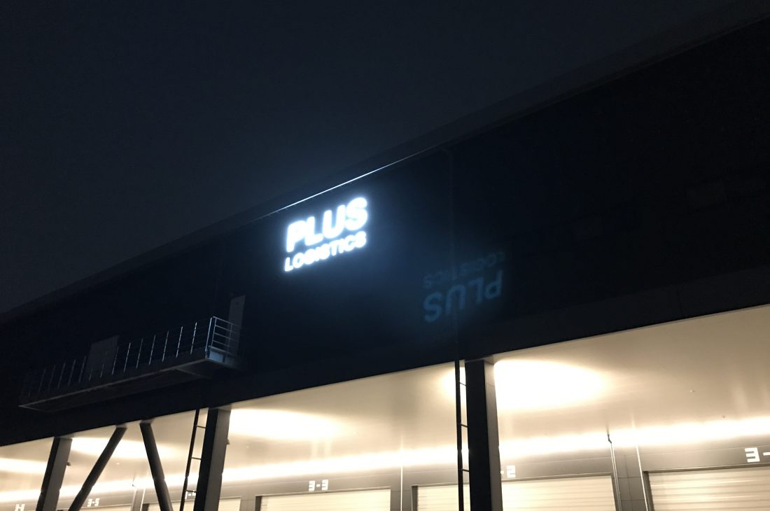 関越自動車道三芳PA脇にある、プラスロジスティクス様の新物流拠点:ロジスクエア三芳センターの屋外看板設置工事を行いました。